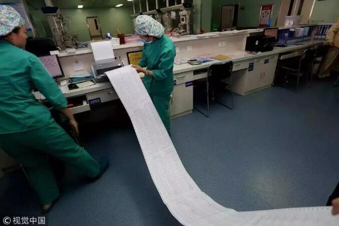 2016年12月30日,河南洛陽(yáng)。20歲少女患重病住ICU一年,欠費賬單100多米長。